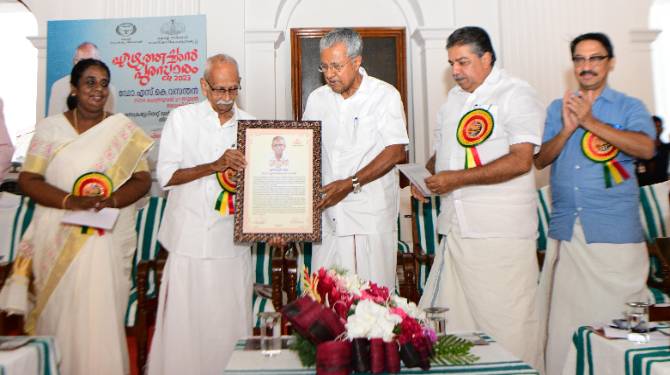 സെക്രട്ടറിയേറ്റ് ദർബാർ ഹാളിൽ സാംസ്കാരിക വകുപ്പ് മന്ത്രി സജി ചെറിയാൻ അദ്ധ്യക്ഷത വഹിച്ച ചടങ്ങിൽ സാംസ്കാരിക വകുപ്പ് സെക്രട്ടറി മിനി ആന്റണി സ്വാഗതമാശംസിച്ചു. ഡോ. വി. വേണു പ്രശസ്തി പത്രം വായിച്ചു. ഡോ. അനിൽ വള്ളത്തോൾ ആദരഭാഷണം നടത്തി. കേരള സാഹിത്യ അക്കാദമി സെക്രട്ടറി സി.പി. അബൂബക്കർ ചടങ്ങിന് നന്ദി അറിയിച്ചു.