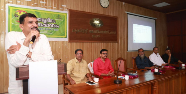 ഇന്ഫര്മേഷന്-പബ്ലിക് റിലേഷന്സ് വകുപ്പ് കോട്ടയം മേഖല ഡെപ്യൂട്ടി ഡയറക്ടര് പ്രമോദ് കുമാര് കെ.ആര്. അധ്യക്ഷത വഹിച്ചു. പ്രസിദ്ധീകരണങ്ങളില് ഭാഷ എഡിറ്റ് ചെയ്ത് ശുദ്ധഭാഷയായി ഉപയോഗിക്കപ്പെടുമ്പോള് സമൂഹ മാധ്യമങ്ങളില് തെറ്റുകളുടെ കൂമ്പാരമായി ഭാഷ മാറുന്നുണ്ടെന്നും അധ്യക്ഷ പ്രസംഗത്തില് അദ്ദേഹം പറഞ്ഞു.