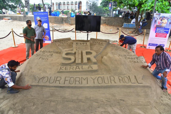 എസ്.ഐ.ആർ: ബീച്ചിൽ മണൽ ശിൽപമൊരുക്കി ബോധവത്കരണം
