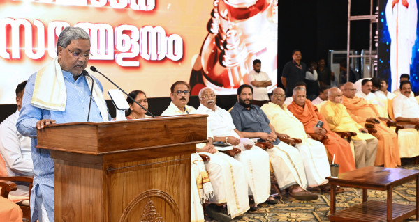 കർണാടക സർക്കാർ ഗുരുദേവന്റെ ദർശനങ്ങൾക്ക് പ്രാധാന്യം നൽകുന്നുണ്ടെന്നും ജന്മം ഒരാളുടെ വിധി തീരുമാനിക്കരുത് എന്ന ഗുരുവിന്റെ വിശ്വാസത്തിൽ ഊന്നിയുള്ള ഭരണമാണ് നടത്തുന്നതെന്നും മുഖ്യമന്ത്രി പറഞ്ഞു. കർണാടകയിൽ ശിവഗിരി മഠവും അനുബന്ധ സ്ഥാപങ്ങളും സ്ഥാപിക്കാനായി സ്ഥലം അനുവദിക്കുകയും ചെയ്തു. 2014-ൽ കർണാടകയിൽ നാരായണ ഗുരു ജയന്തി ആഘോഷമായി പ്രഖ്യാപിച്ചു. ഗുരുവിന്റെ കൃതികൾ കന്നഡയിലേക്ക് വിവർത്തനം ചെയ്യുകയും മംഗളൂരു സർവ്വകലാശാലയിൽ ഗുരുവിന്റെ പേരിൽ അധ്യയന പീഠം സ്ഥാപിക്കുകയും ചെയ്തു. ഇന്നത്തെ കാലഘട്ടത്തിൽ വിദ്വേഷത്തിനെതിരായി സംസാരിക്കാൻ ഗുരുദർശനം വ്യാപകമായി പ്രചരിപ്പിക്കണമെന്നും മുഖ്യമന്ത്രി സിദ്ധരാമയ്യ പറഞ്ഞു.