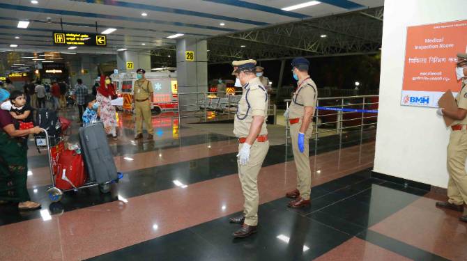 എയ്റോ ബ്രിഡ്ജില്വച്ചുതന്നെ മുഴുവന് യാത്രക്കാരുടേയും ശരീരോഷ്മാവ് പരിശോധിച്ച ശേഷം ആരോഗ്യ വകുപ്പിന്റെ പ്രത്യേക പരിശോധനകള്ക്ക് വിധേയരാക്കി. യാത്രക്കാരെ 20 പേരുള്ള ചെറു സംഘങ്ങളാക്കിത്തിരിച്ച് ജില്ലാ മെഡിക്കല് ഓഫീസറുടെ നേതൃത്വത്തില് കോവിഡ് - കോറന്റൈന് ബോധവത്ക്കരണ ക്ലാസ് നല്കിയ ശേഷം അഞ്ച് കൗണ്ടറുകളിലായി ജില്ല തിരിച്ചുള്ള വിവര ശേഖരണം നടത്തി. തുടര്ന്ന് എമിഗ്രേഷന്, കസ്റ്റംസ് പരിശോധനഎന്നിവയ്ക്കു ശേഷമാണ് യാത്രക്കാര് വിമാനത്താവളത്തിനു പുറത്തിറങ്ങിയത്. പ്രകടമായ ആരോഗ്യ പ്രശ്നങ്ങളുള്ളവരെ നേരിട്ട് ഐസൊലേഷന് കേന്ദ്രങ്ങളിലേയ്ക്കും പ്രത്യേക പരിഗണനാ വിഭാഗത്തിലുള്ള മുതിര്ന്ന പൗരന്മാര്, ഗര്ഭിണികള്, കുട്ടികള്, ഉറ്റ ബന്ധുവിന്റെ മരണത്തോടനുബന്ധിച്ച് എത്തിയവര് തുടങ്ങിയവരെ നേരിട്ട് വീടുകളിലേയ്ക്കും തുടര് ചികിത്സയ്ക്കെത്തിയവരെ ആശുപത്രികളിലേയ്ക്കും മറ്റുള്ളവരെ കോവിഡ് കെയര് സെന്ററുകളിലേയ്ക്കും ആരോഗ്യ വകുപ്പിന്റെ കര്ശന മേല്നോട്ടത്തില് പ്രത്യേക നിരീക്ഷണത്തിനായി കൊണ്ടുപോയി.