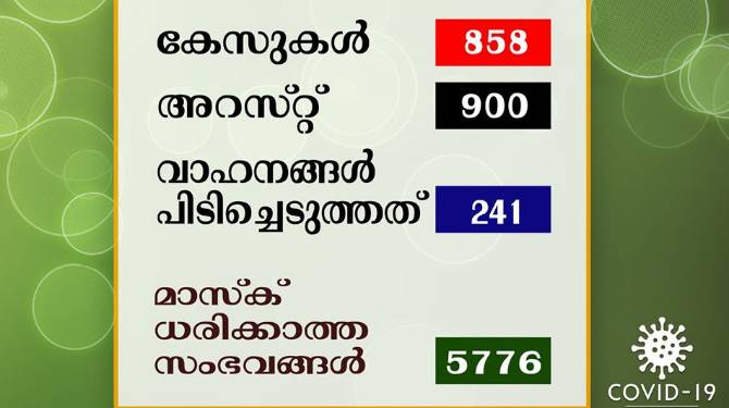 അടച്ചുപൂട്ടൽ ലംഘനം; ഇന്ന് 858 പേര്ക്കെതിരെ കേസ്