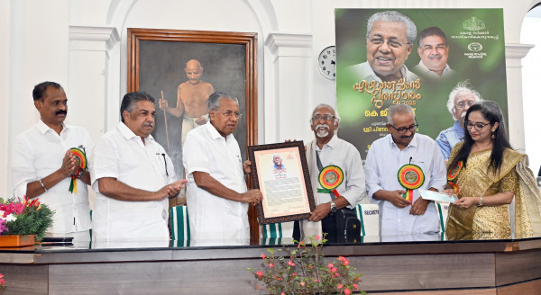 രാഷ്ട്രീയത്തിന് അതീതമായി സാഹിത്യത്തിന്റെ ഗുണമേൻമയ്ക്കാണ് സർക്കാർ മുൻഗണന നൽകുന്നതെന്ന് മുഖ്യമന്ത്രി പിണറായി വിജയൻ. എഴുത്തുകാർക്ക് ആവിഷ്കാര സ്വാതന്ത്ര്യ നിഷേധവും പുസ്തക നിരോധനങ്ങളും സിനിമകൾക്ക് ഏർപ്പെടുത്തുന്ന തടസ്സങ്ങളും സമകാലിക ഇന്ത്യയിൽ അരങ്ങേറുമ്പോൾ പ്രതികരിക്കുന്ന കവികളെയാണ് കാലം ആവശ്യപ്പെടുന്നതെന്നും മുഖ്യമന്ത്രി വ്യക്തമാക്കി. ദർബാർ ഹാളിൽ നടന്ന ചടങ്ങിൽ 2025 ലെ എഴുത്തച്ഛൻ പുരസ്കാരം കെ ജി ശങ്കരപ്പിളളയ്ക്ക് സമർപ്പിച്ച് സംസാരിക്കുകയായിരുന്നു അദ്ദേഹം. അഞ്ചു ലക്ഷം രൂപയും ശിൽപവും പ്രശസ്ത്രിപത്രവുമടങ്ങുന്നതാണ് പുരസ്കാരം.